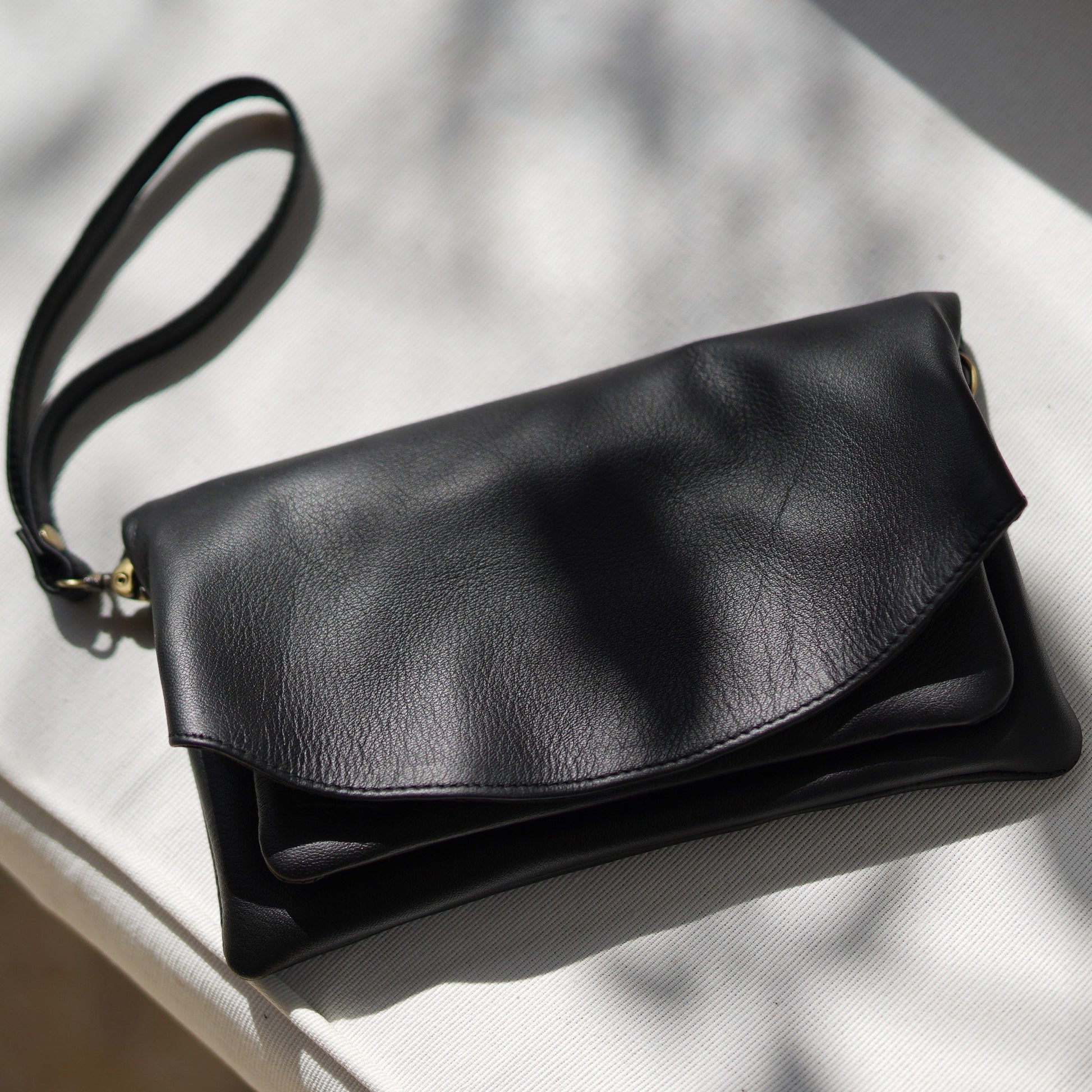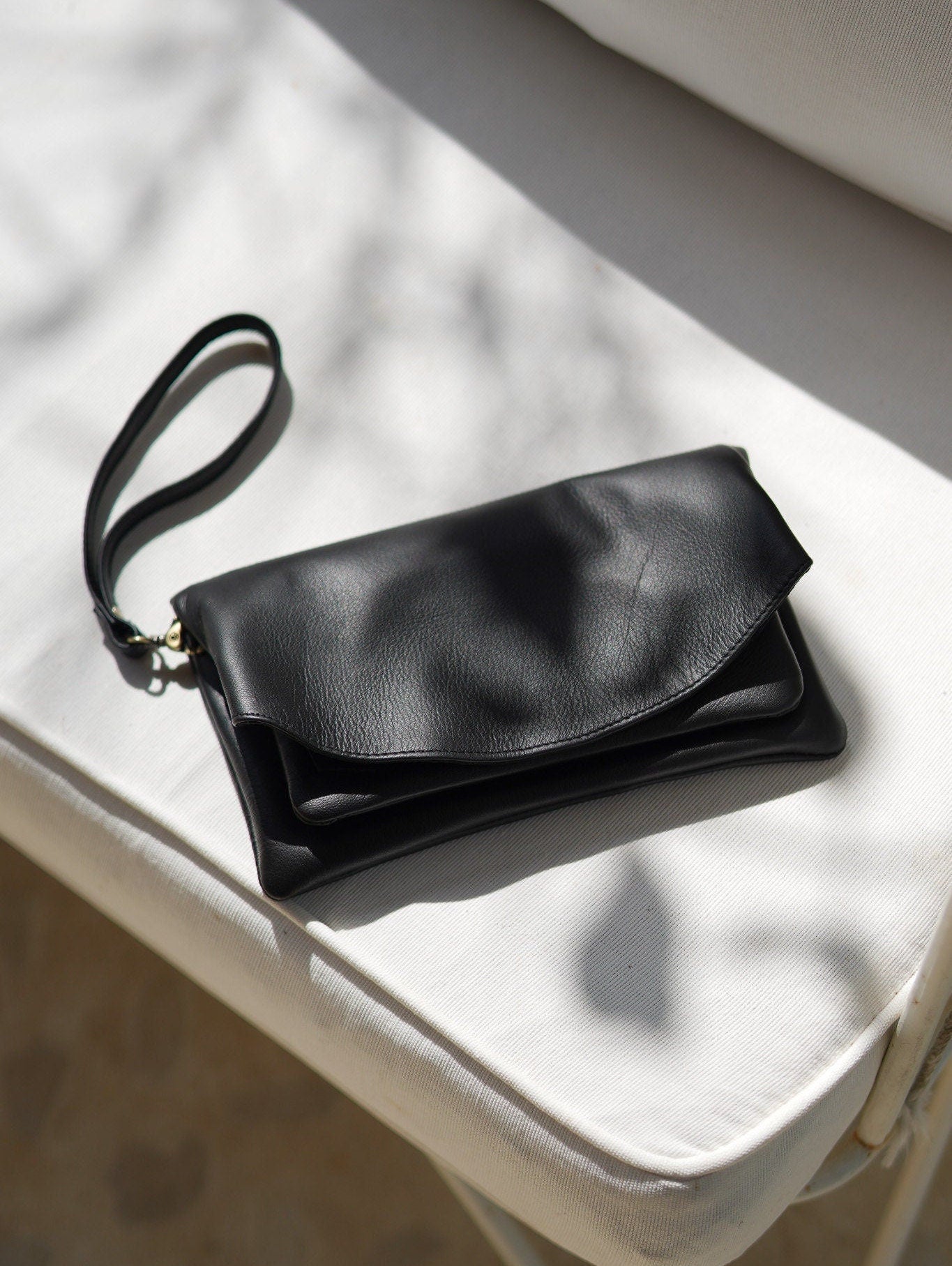 This beautiful black leather clutch is handmade from supple soft leather. Wear this as a small shoulder style of use it as a clutch. It is big enough to fit your phone, keys and cardholder. It will add a chic touch to your outfit.