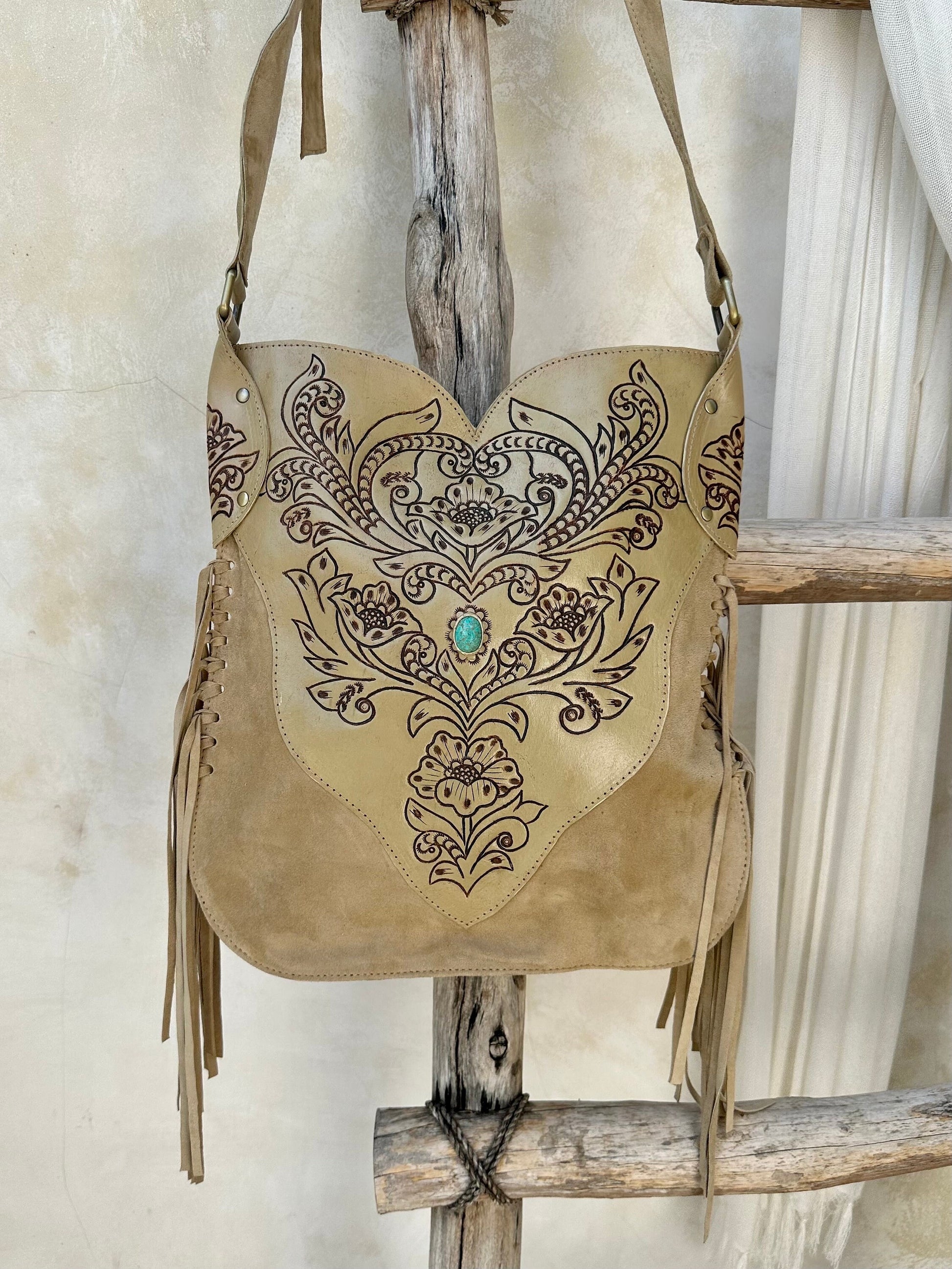 ♥ BOHO SAND LEATHER FRINGE WESTERN BAG