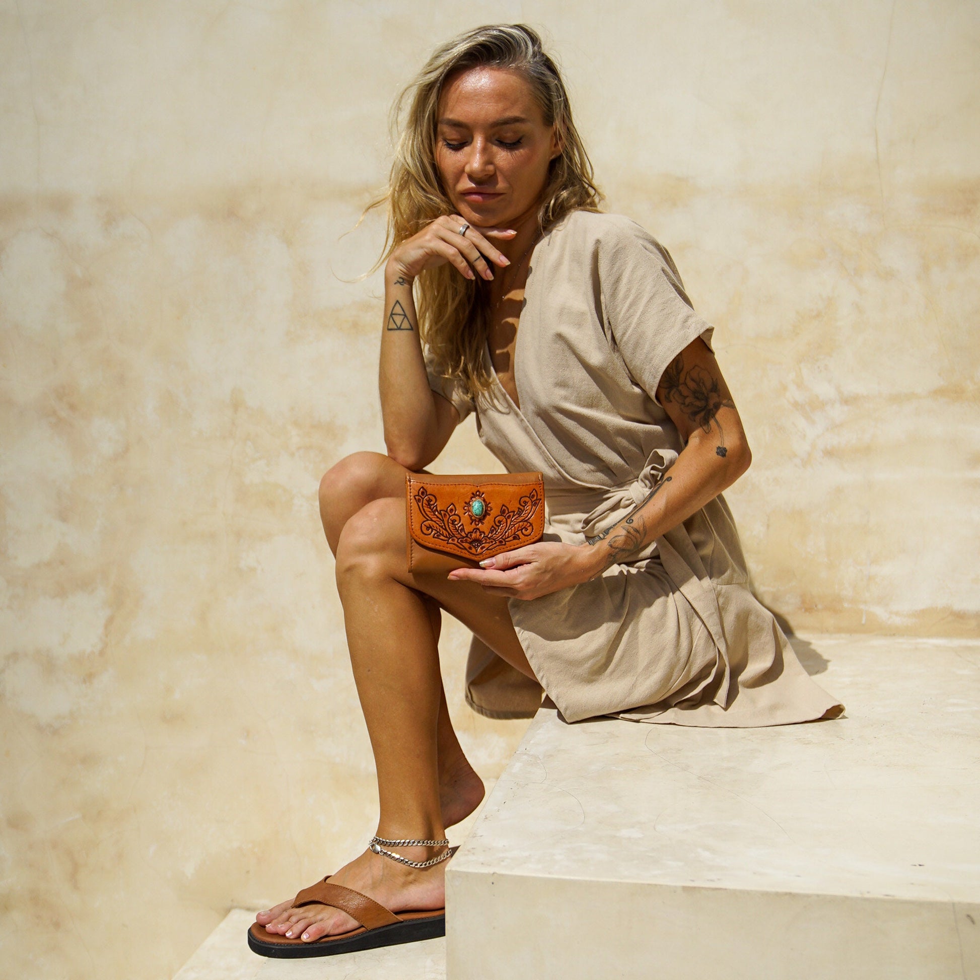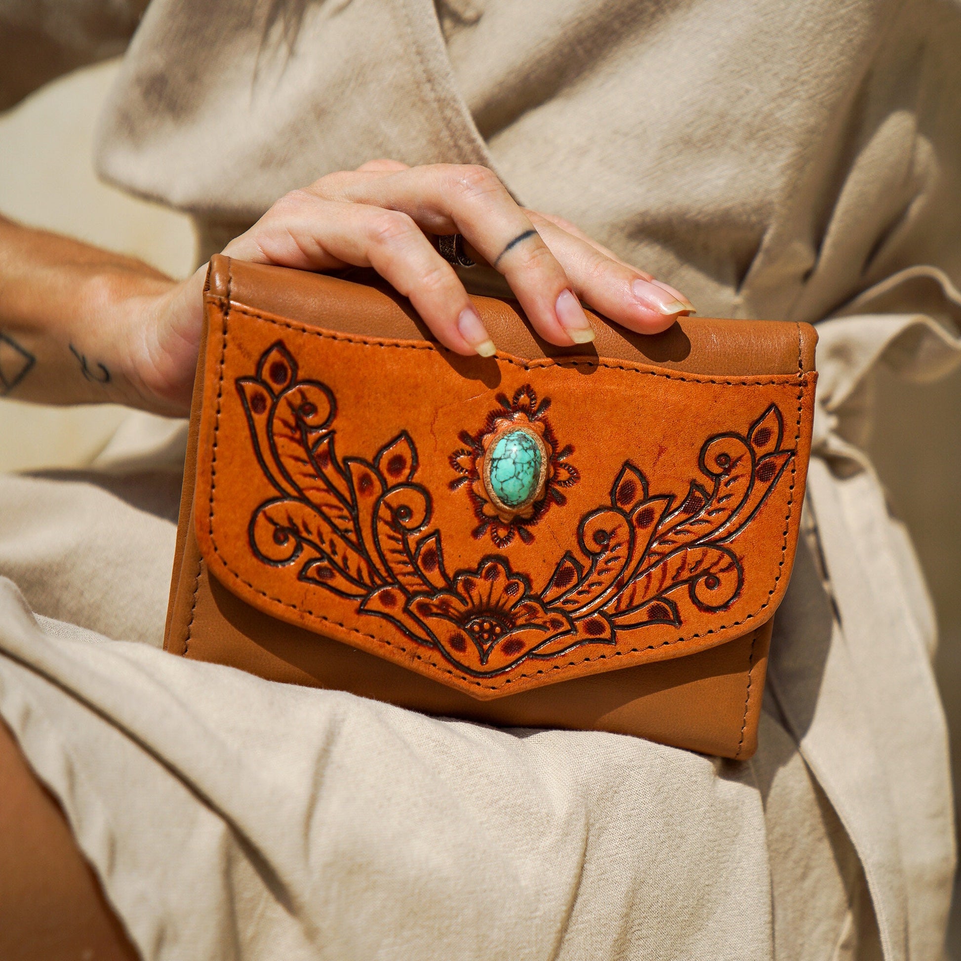 • 100% Genuine Goat Leather, Tooled Cow Leather with Natural blue stone